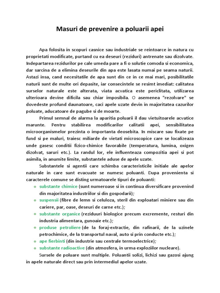 Proiect Prevenirea Si Combaterea Poluarii Apei Management 338877