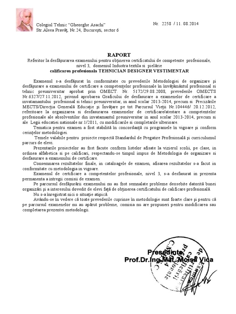 Metodologie Examen De Certificare A Competentelor Profesionale Nivel 3