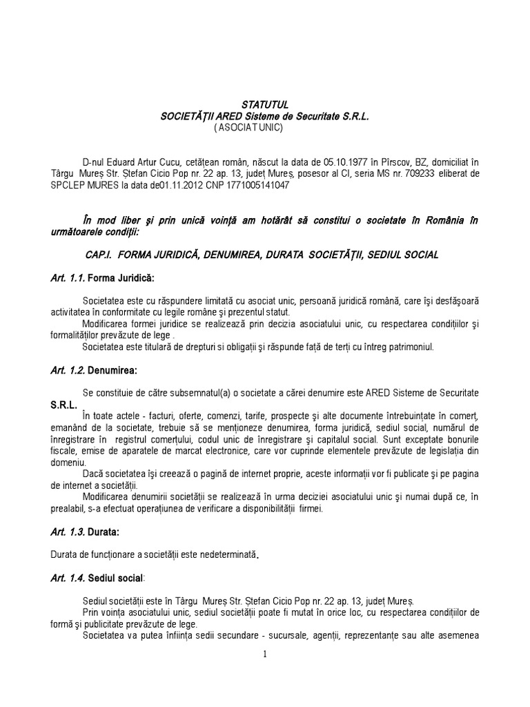 Doc Model Act Constitutiv Alin Mastan Academia Edu