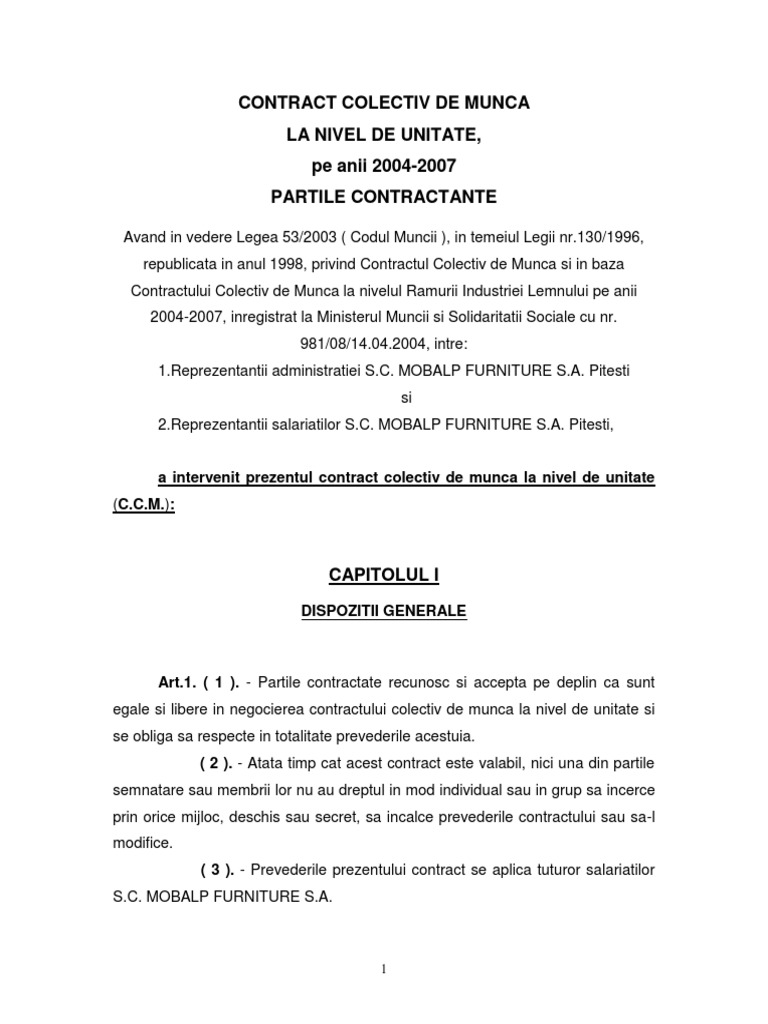 Contract Colectiv De Munca Model