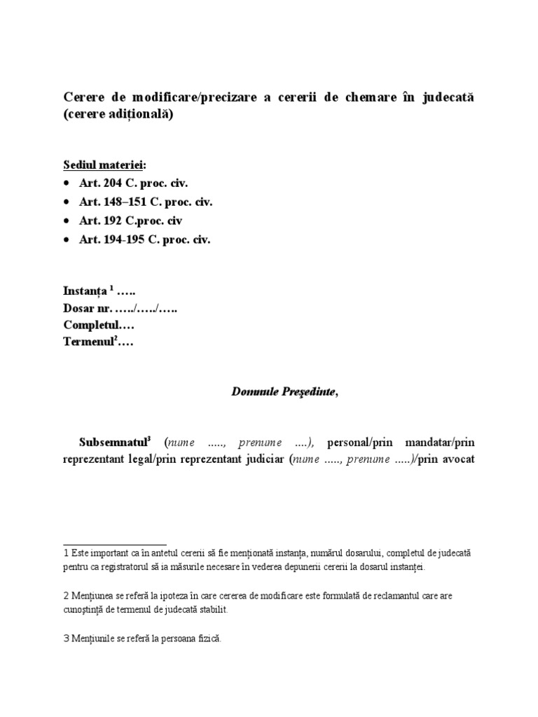 Doc Cerere De Modificare Precizare A Cererii De Chemare In Judecată Cerere Adiţională Tanasa Gabriel Academia Edu