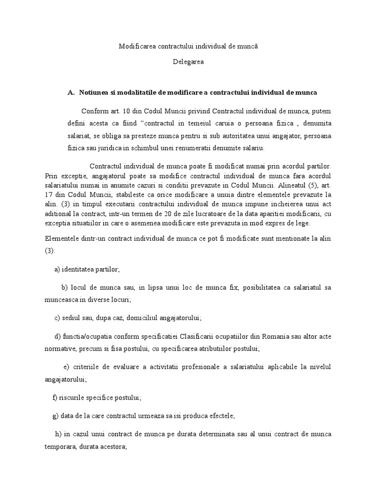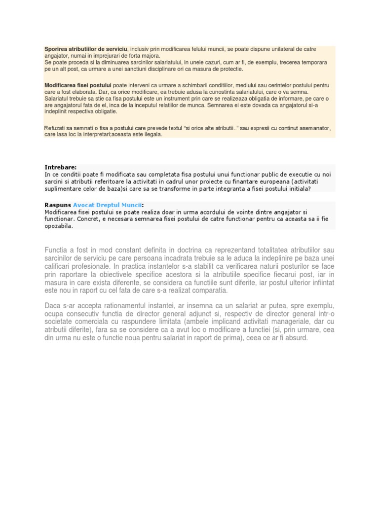 Prin Adăugarea Acestor Noi Sarcini A Avut Loc O Schimbare A Unui Element Esenţial A Fisei Postului Respectiv A Felului Muncii Fără A Exista Acordul Salariatului