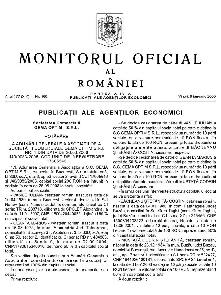 Monitorul Oficial Partea A Iv A Acte Ale Societăților Comerciale Monitoruloficial Ro