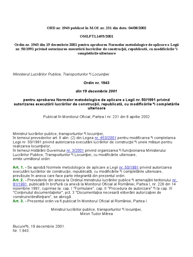 Norme Metodologice De Aplicare Ale Legii 50 Din 1991 Actualizate 2016