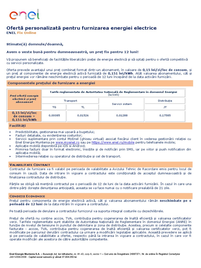 Https Www Enel Ro Content Dam Enel Ro Informatii Utile Fomulare Clienti Tarife Reglementate Oferta Furnizare Casnic Fara Pl Muntenia De La 01 03 2019 Pdf