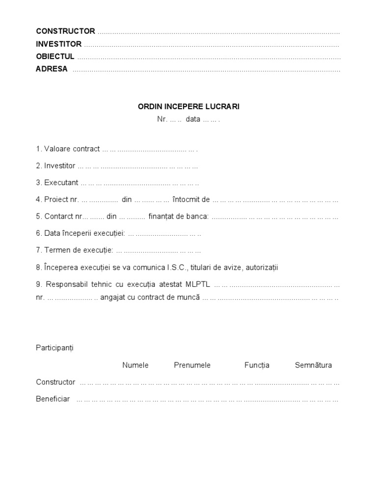 Ordin De Incepere A Lucrarilor