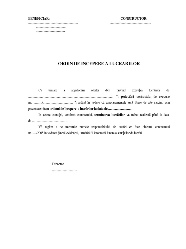 Ordin De Incepere A Lucrarilor