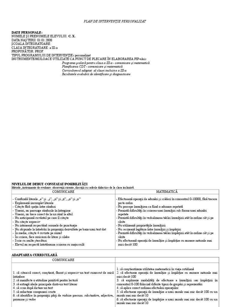 Plan De Interventie Personalizat Clasa A Iii A Sem Ii