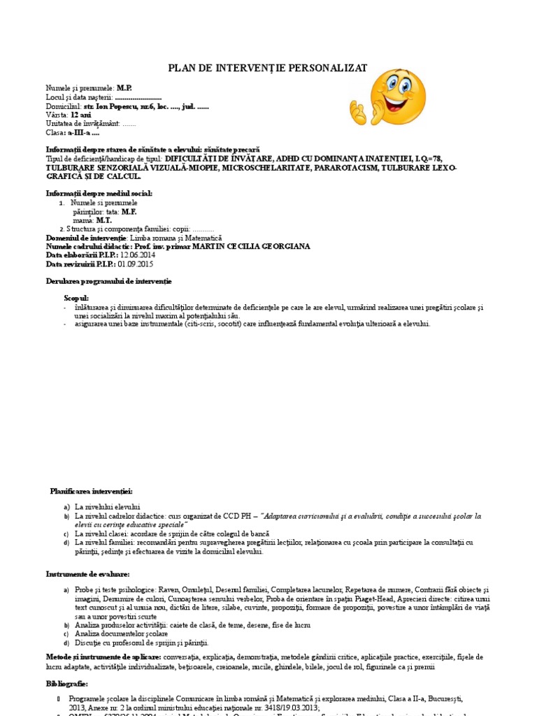 Doc Program De Intervenţie Personalizat Miana Imbuzan Academia Edu