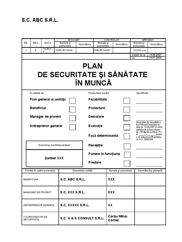 Plan Propriu Ssm Sanitare Si Hvac Coseda Doc Document