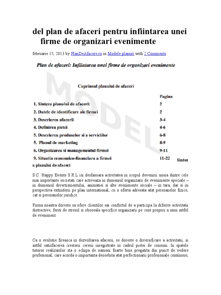 Model Plan De Afaceri Pentru Infiintarea Unei Firme De Organizari Evenimente Plandeafacere Ro
