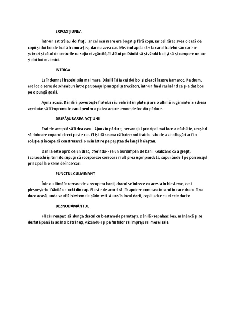 Dănilă Prepeleac Rezumat Pe Momentele Subiectului