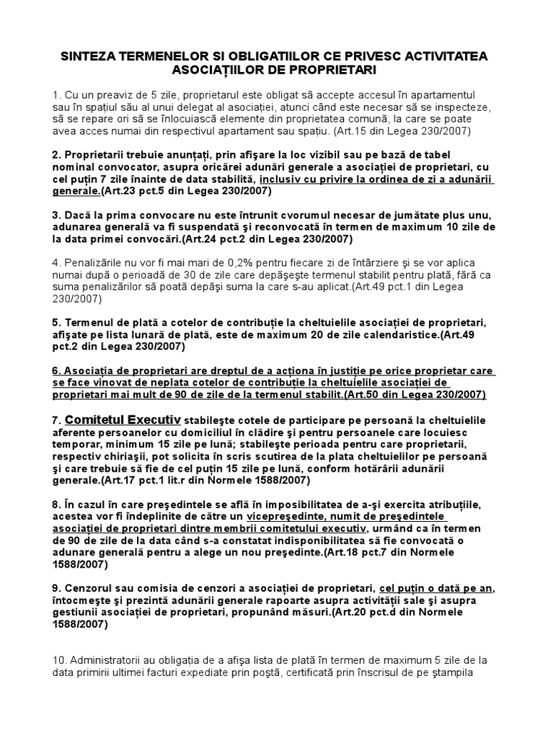Sinteza Termene Asociatii Proprietari