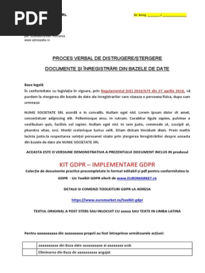 Kit Gdpr Proces Verbal De Distrugere Stergere Din Baza De Date