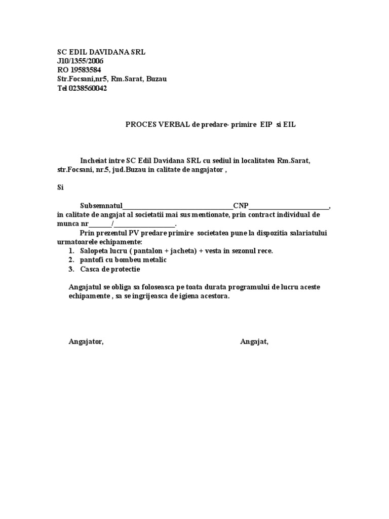 Doc Proces Verbal De Predare Primire Amplasament Roxy Rox Academia Edu