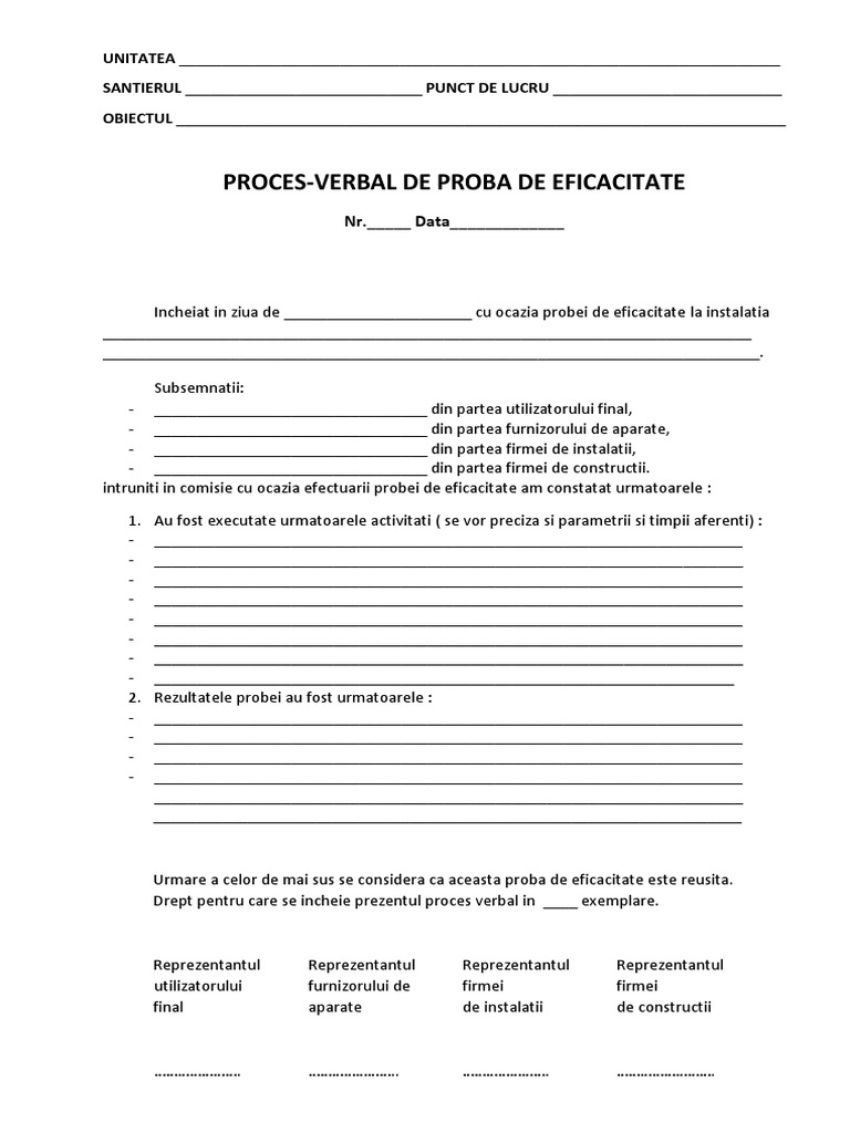 Proces Verbal Pentru Proba De Functionare A Instalatiei Docx Document