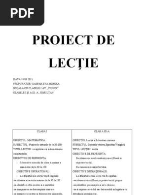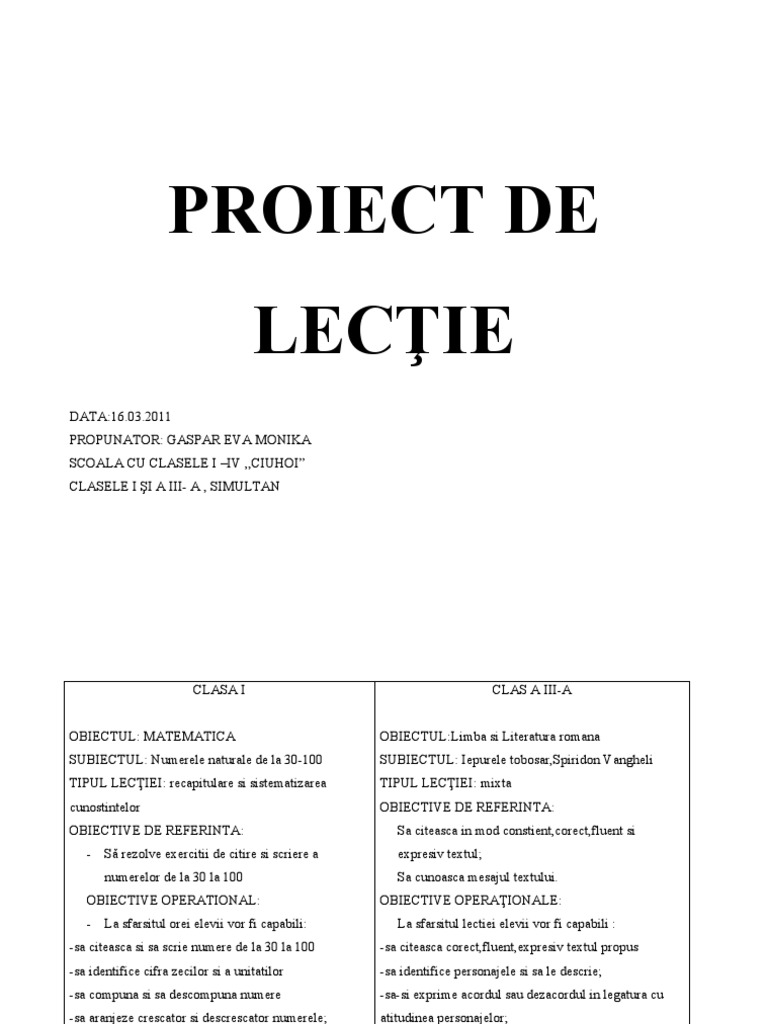 Proiect Didactic Simultan Clasele I Iii Adrianpop1982 27 01 2018