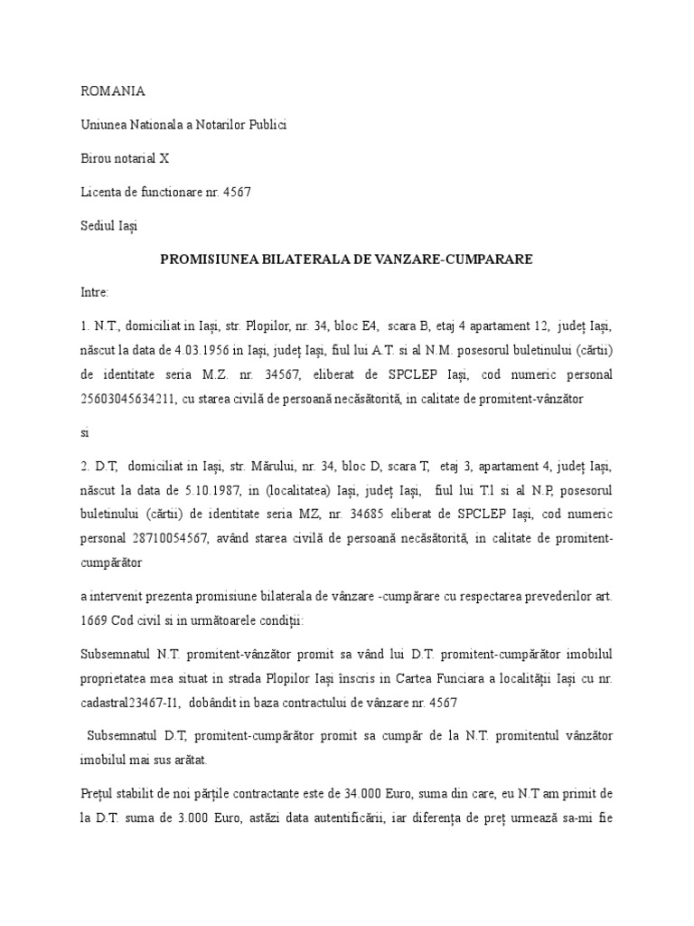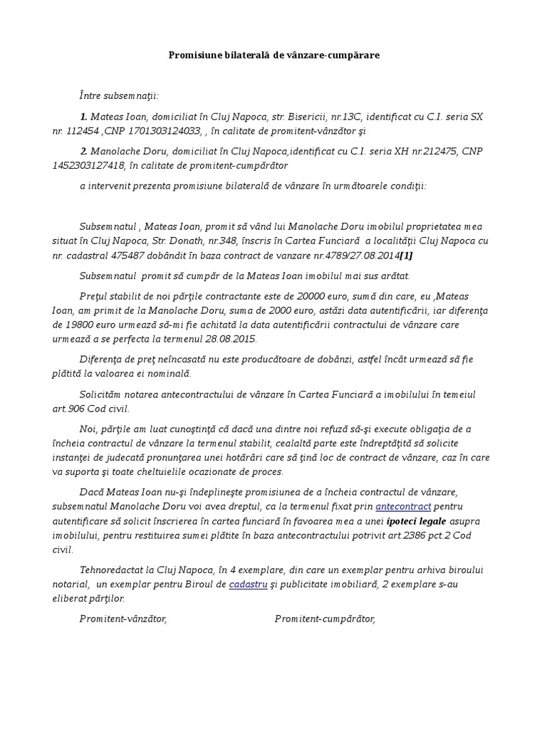 2 Promisiune Bilaterala De Vanzare Cumparare