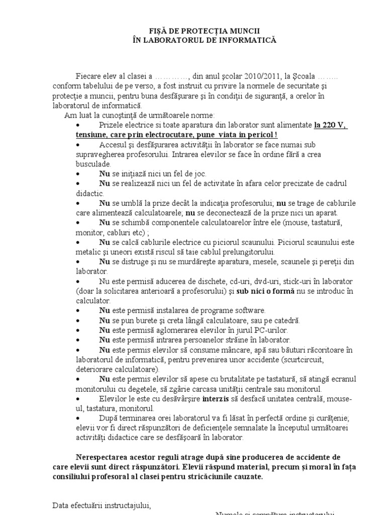 Instrucţiuni Pentru Protecţia Muncii In Laboratorul De Fizică