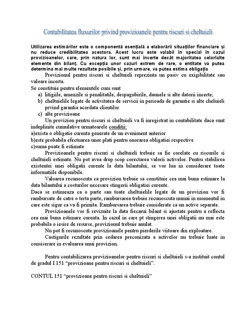 Contabilitatea Provizioanelor Contul 151
