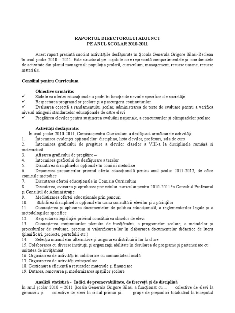 Model Raport Argumentativ Al Directorului Adjunct Gimnaziu
