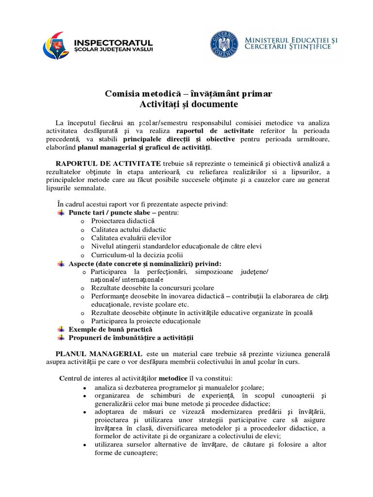 Raport de activitate comisie metodica invatamant primar. Cursuri şcoala online cursuri online primar cursuri online gimnaziu cursuri online liceu profesorul la clasă ghid practic de pedagogie resurse educaţionale interactive revista cadrelor didactice evenimente diplome pentru evenimente. Solicitarea de grafice si planuri de activitate la nivel de clasa comisie invatatorii si dirigintii resp. Se poate aprecia că cdş răspunde într o bună măsură solicitărilor. Listă analizată în comisia pentru curriculum.