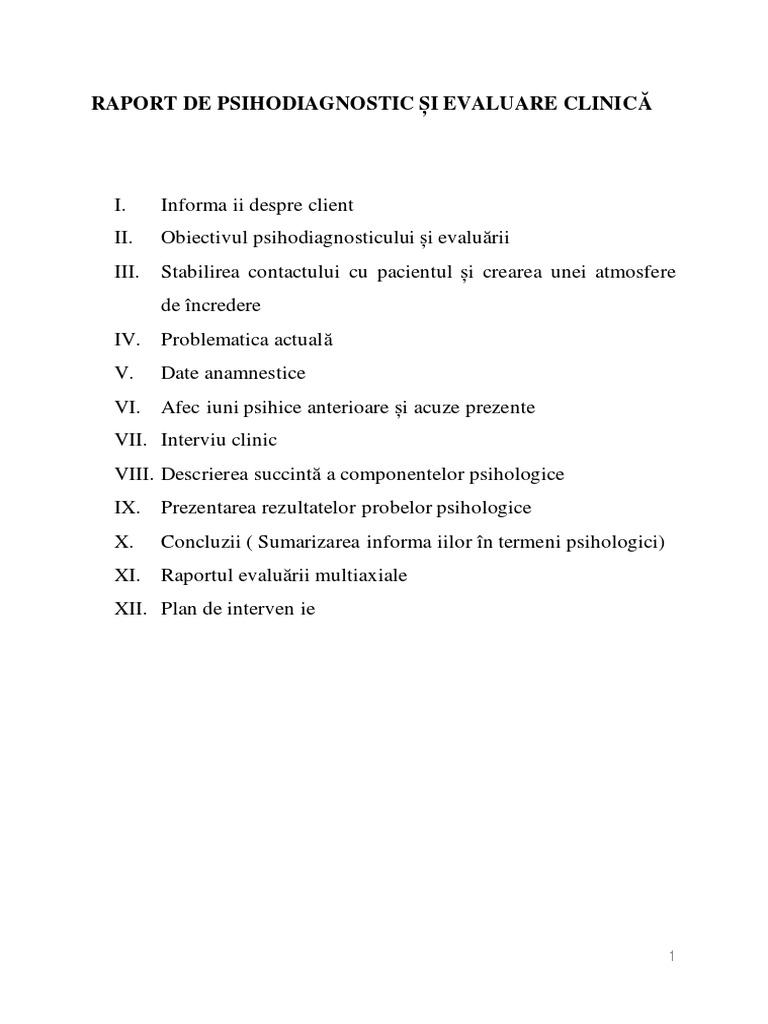 Raport De Psihodiagnostic Si Evaluare Clinica Model Completat