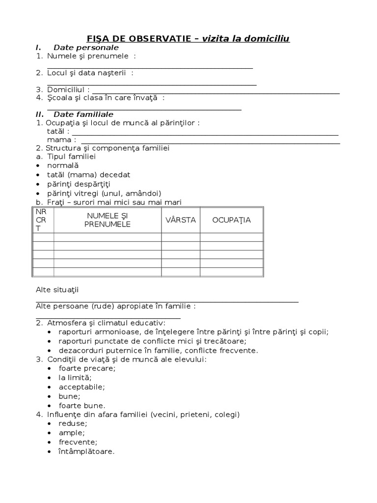Fisa De Observatie Vizita La Domiciliu