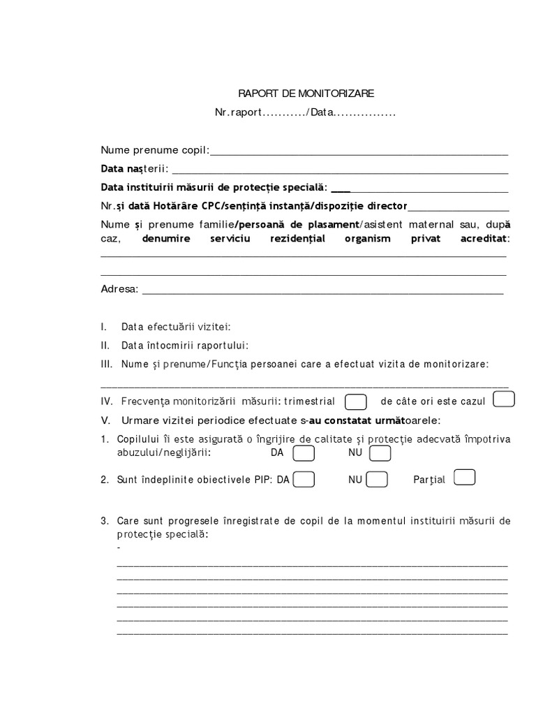 Raport Monitorizare Plasament