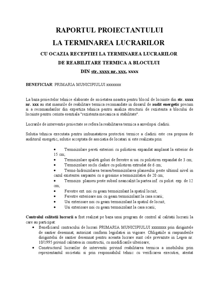 Referat Receptie La Terminarea Lucrarilor