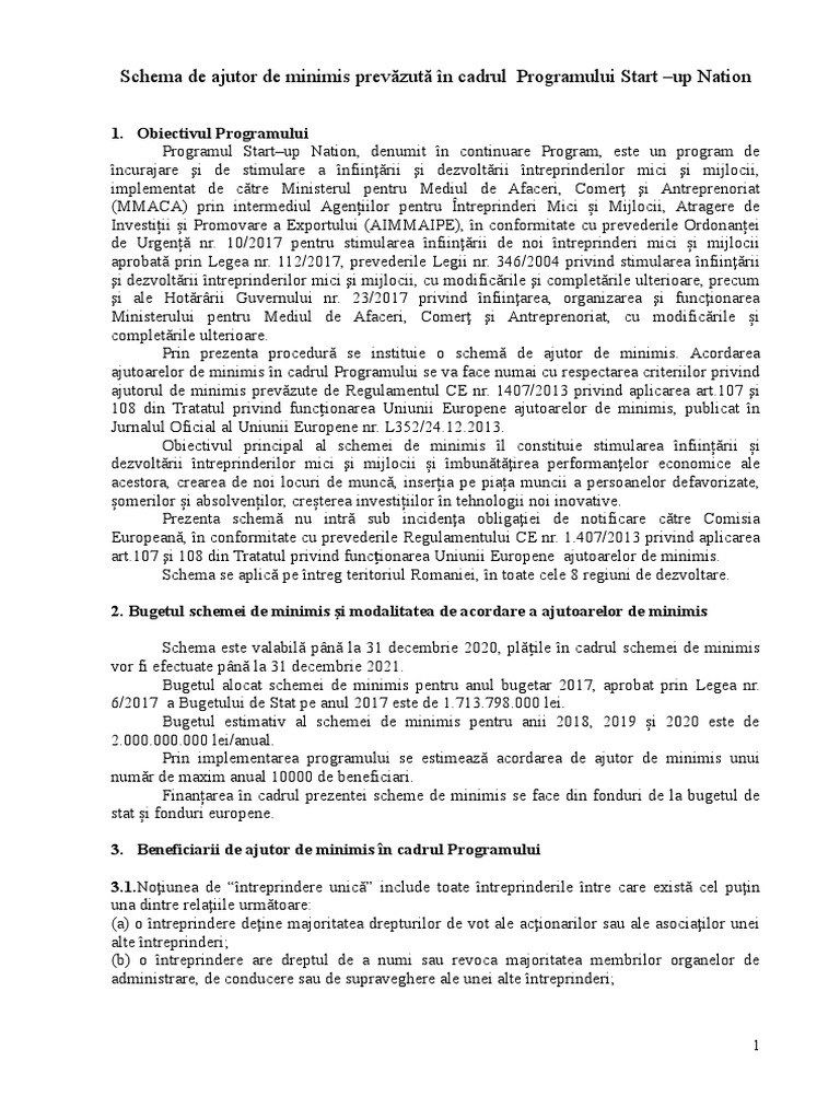 Schema De Ajutor De Minimis Prevăzută In Cadrul Programului Start Up Nation