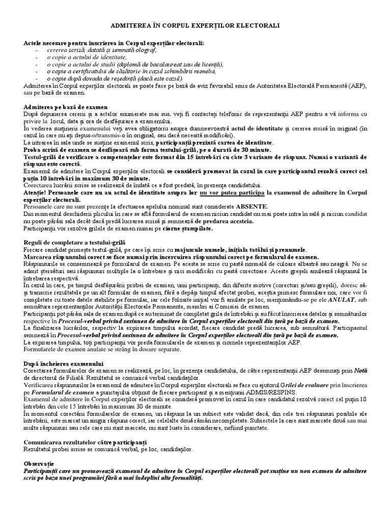 Participanții Care Nu Promovează Examenul De Admitere In Corpul Experților Electorali Pot Susține Un Nou Examen De Admitere Scris Pe Baza Unei Programări Fără A Mai Indeplini Alte Formalități