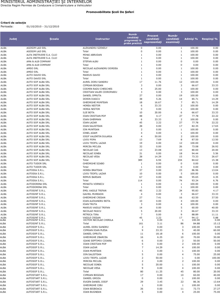 Clasament Ate Scoli Soferi Instructori Auto Practica 31 12 2010