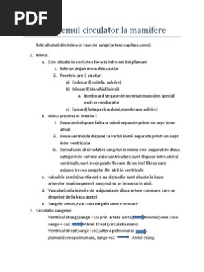 Inima şi vasele sanguine sunt cele mai improtante componente ale sistemului circulator. Artera aorta se afla in partea stanga spre deosebire de pasari si pleaca din ventriculul stang cu. Sistemul circulator la mamifere. Sistemul circulator la vertebrate elevi.