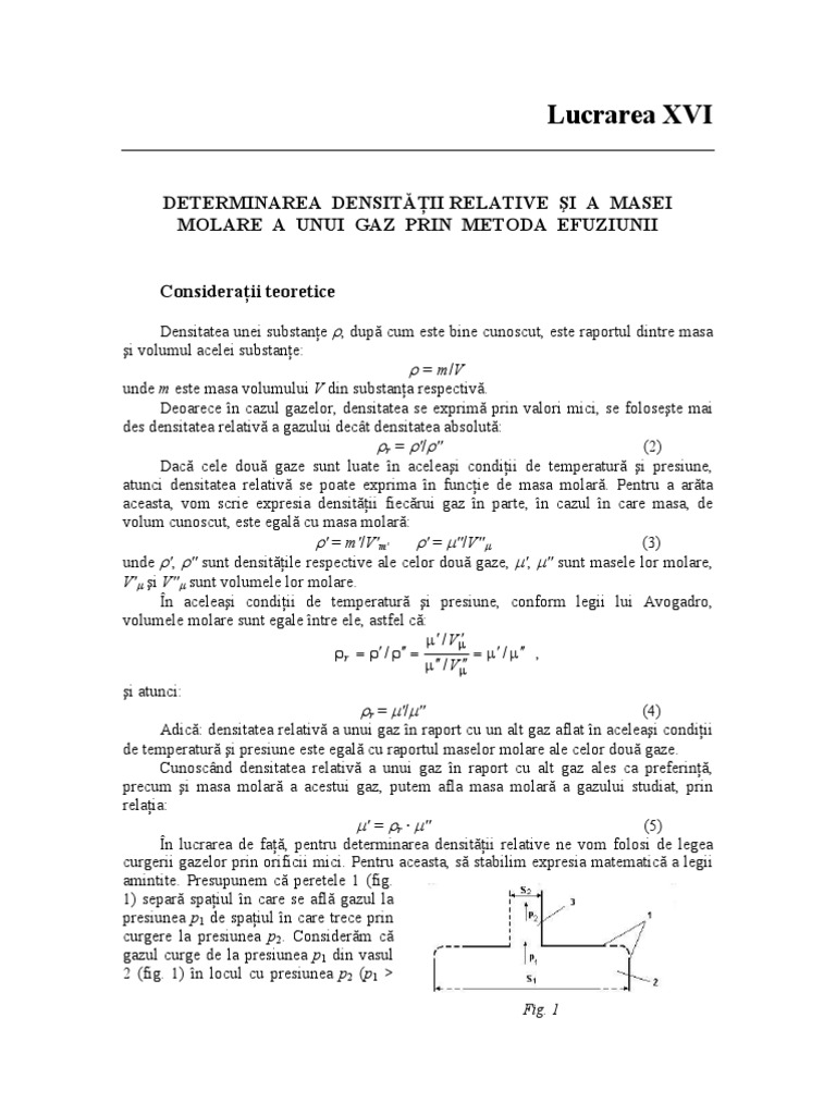 Determinarea Densitatii Relative Si A Masei Molare A Unui Gaz Prin Metoda Efuziunii Tocilar Ro