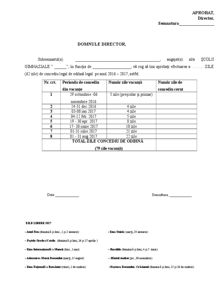 Model Cerere Concediu De Odihna An Scolar 2016 2017